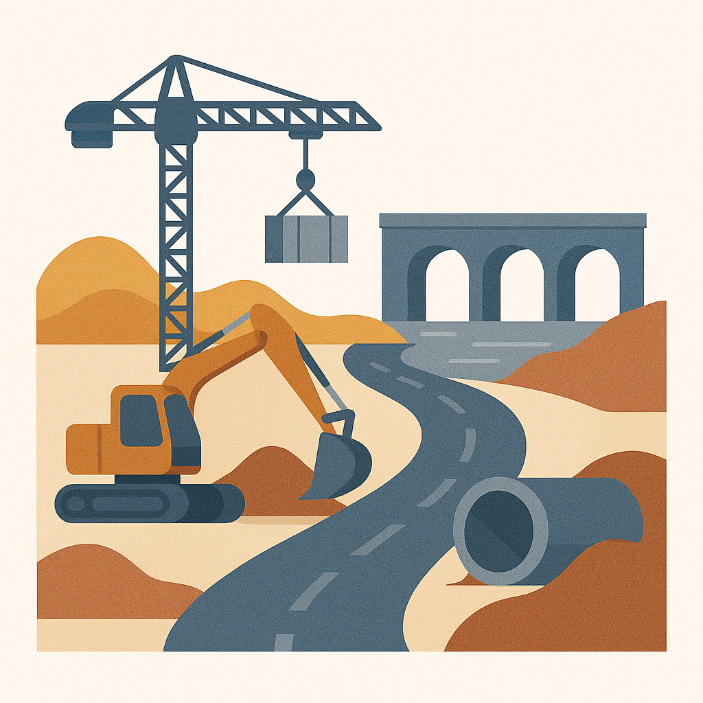 Güvenli ve sürdürülebilir şehirlerin temeli güçlü altyapıdır. Yol, kanalizasyon, içme suyu, elektrik ve diğer altyapı projelerinde uzman ekibimizle, şehirlerin geleceğini bugünden inşa ediyoruz. Kamu ve özel sektör için yürüttüğümüz altyapı projelerinde kalite, güvenlik ve uzun ömürlü kullanım ilkelerini ön planda tutuyoruz.
